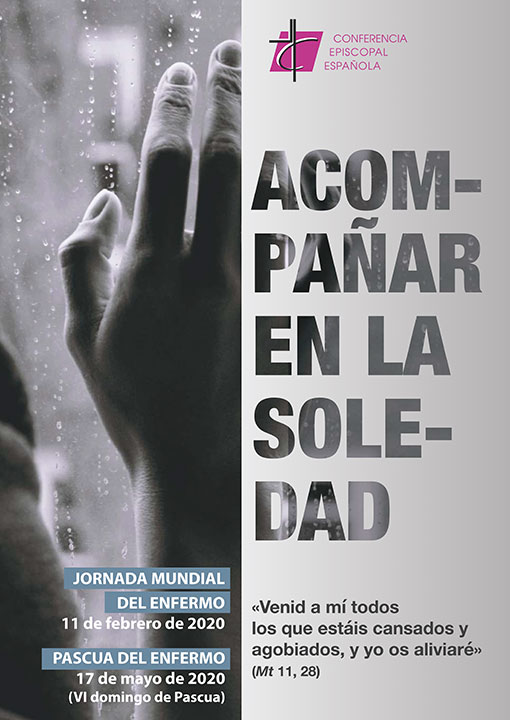 “Acompañar en la soledad” es el lema de la Jornada Mundial del Enfermo 2020. El departamento de Pastoral de la Salud, dentro de la Comisión Episcopal de Pastoral, ha editado los materiales para esta Campaña que en España tiene dos momentos: el 11 de febrero, festividad de Nuestra Señora de Lourdes, es el Día del enfermo, de carácter mundial. La Iglesia en España celebra el 17 de mayo la Pascua del enfermo.